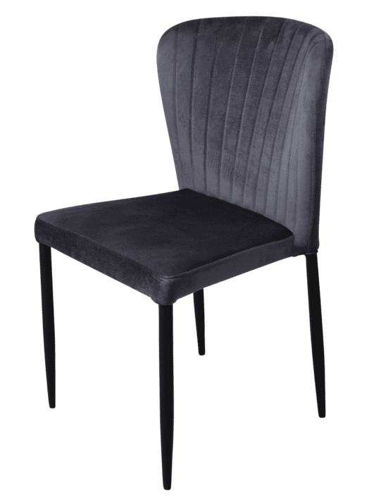 Deze stoel heeft een zwart metalen frame en een comfortabele, luxe zitting van velours.