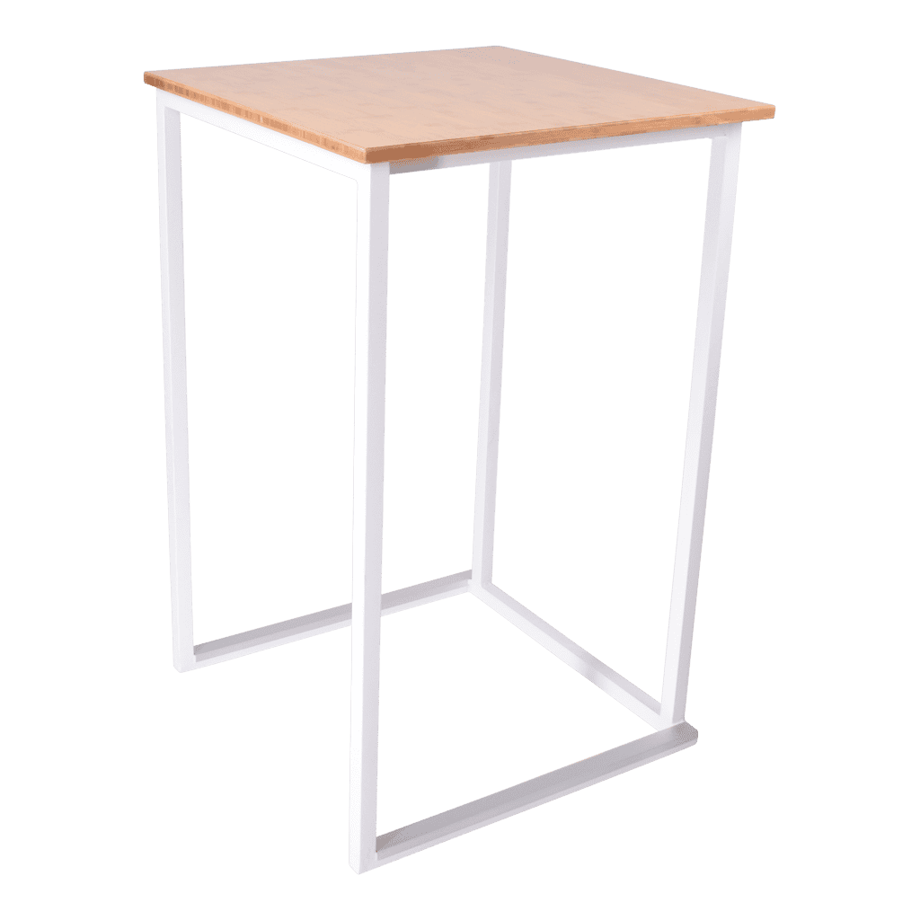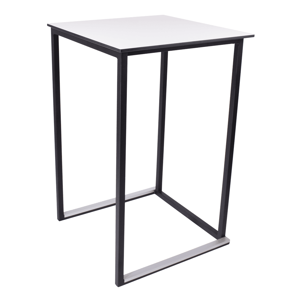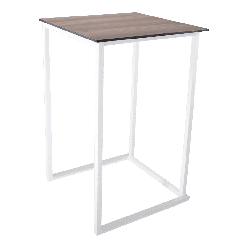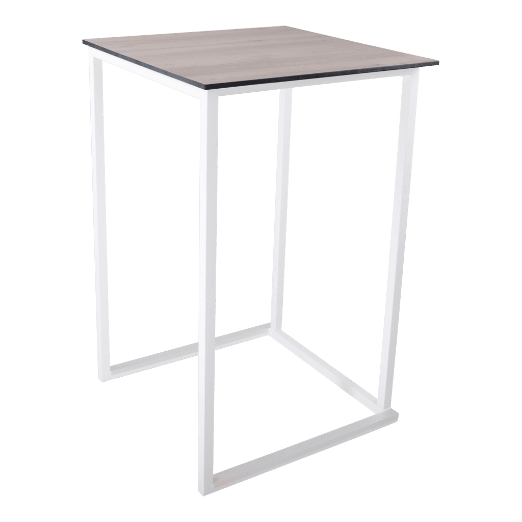 Het frame is gemaakt van staal dat gepoedercoat is in modern wit of zwart. Dit geeft de statafel een stijlvolle en moderne uitstraling die perfect past bij elk interieur of evenement. Het minimalistische ontwerp maakt ‘m veelzijdig inzetbaar, van hippe cafés tot stijlvolle evenementenlocaties. Het blad is gemakkelijk te wisselen, zo kun je, indien gewenst, voor elke gelegenheid een andere uitstraling bieden.