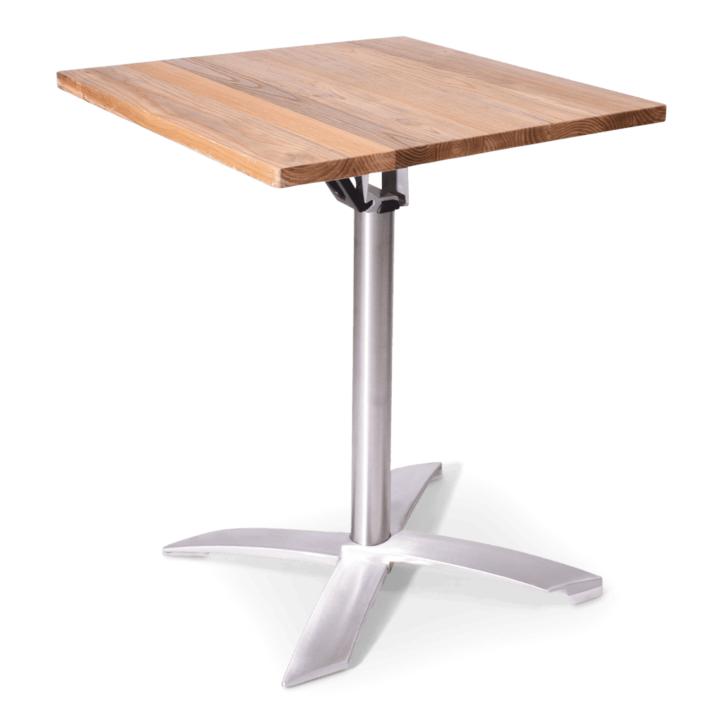 Ben je in het bezit van een groot terras maar heb je weinig opbergruimte? De Kansas terrastafel is verkrijgbaar met hout of zwart blad. Het blad is zeer gebruiksvriendelijk want door het systeem kan het blad opzij geklapt worden. De voet van de tafel is naast zwart ook in roestvrijstaal verkrijgbaar. De voeten passen in elkaar zodat je deze terrastafel dus gemakkelijk in een rij kan opbergen. Kom maar op met de lange, gezellig terrasavonden.