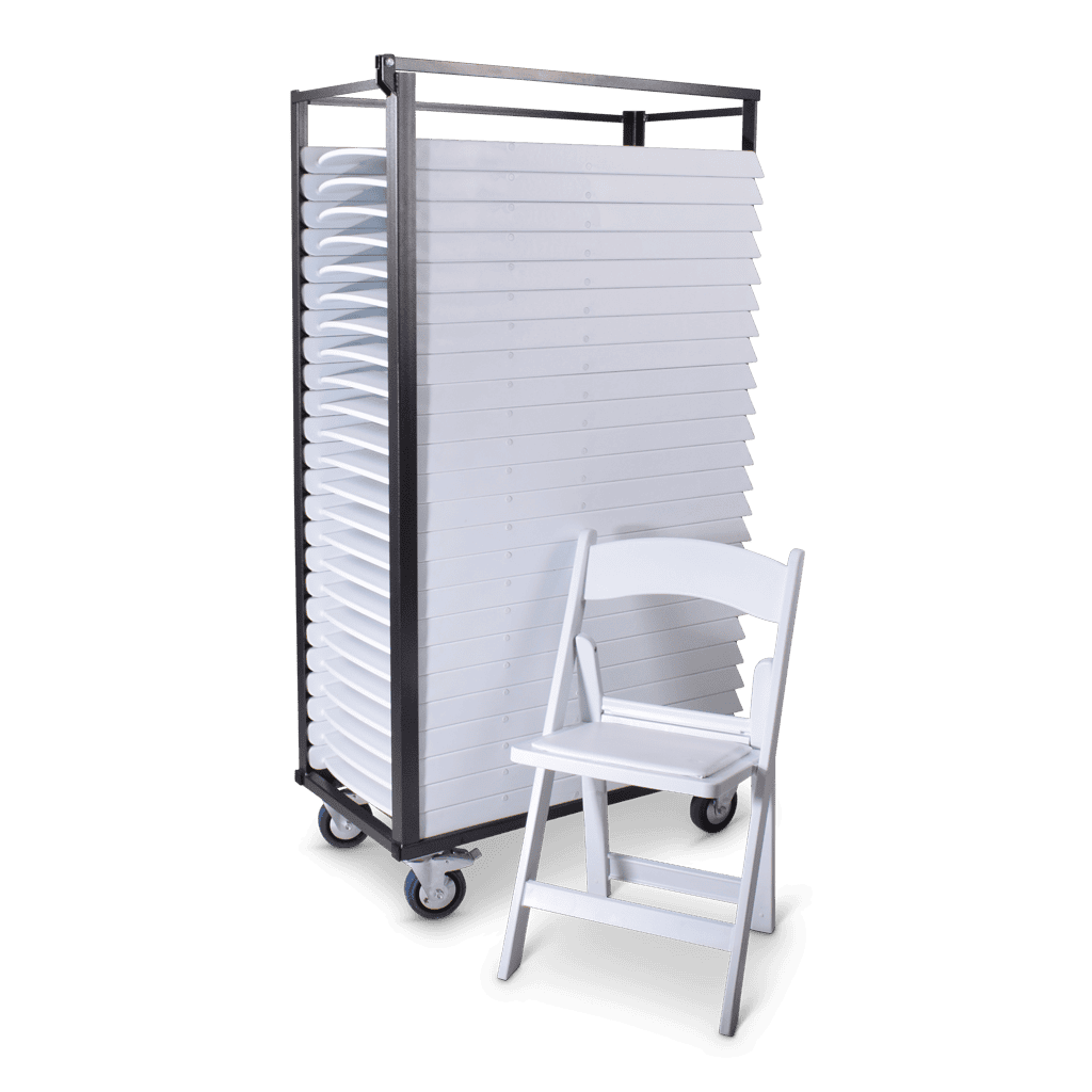 Makkelijk te gebruiken Eems Resin klapstoelen in wit of zwart. Compleet met transportkar!