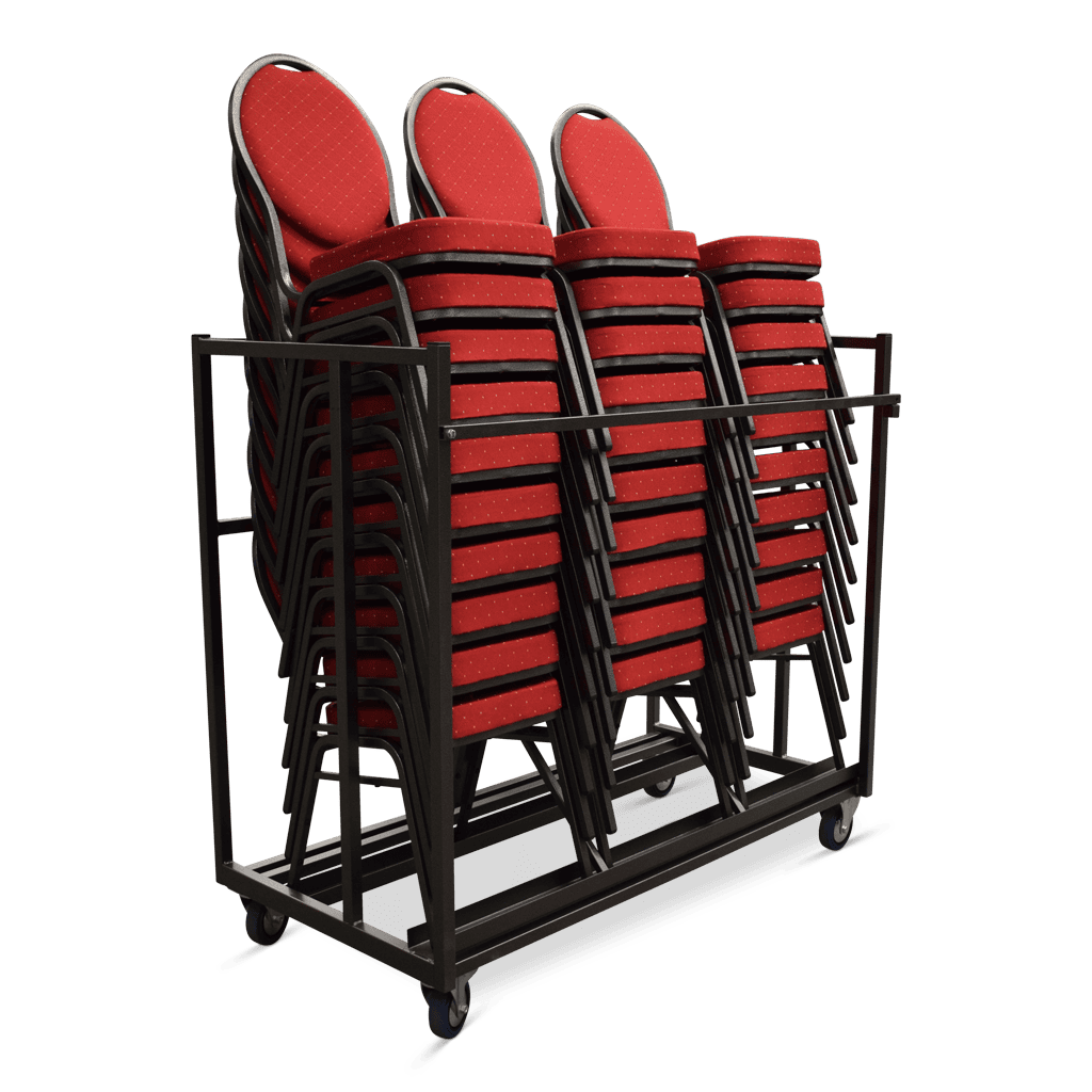 Statafelshop actiepakket; een transportkar gevuld met 30 stapelstoelen Maas.