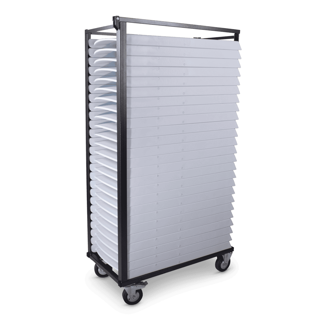 Een transportkar speciaal voor onze klapstoel Eems Resin. Je kan op deze kar 25 stoelen plaatsen. Zo is het klaarzetten van een ceremonie opstelling best gemakkelijk. En alle stoelen zijn ook zo weer opgeruimd, even stapelen en de kar wegzetten voor een volgend huwelijk.